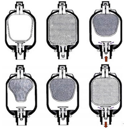 Bình tích áp varem hoạt động theo 2 quá trình cơ bản là quá trình nạp và quá trình xả. Thông qua các cửa dầu một lượng dầu thủy lực sẽ được đưa vào bên trong của bình tích áp. Khí nito trong bình sẽ được nén lại tới một áp suất giới hạn nhất định. Khi một hệ thống thủy lực nào đó cần nhu cầu về áp suất hoặc lưu lượng (nhỏ hơn áp suất trong bình tích áp) thì sẽ được cung cấp từ thiết bị này.